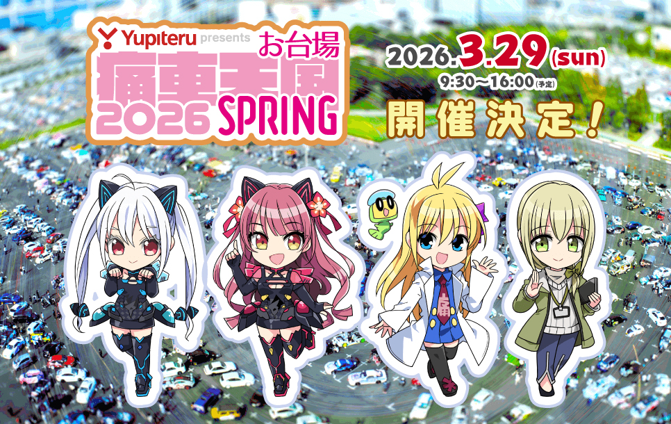 2026年3月29日(日)、お台場野外特設会場にて開催される、Yupiteru presents お台場痛車天国2026 SPRINGに特別協賛します。