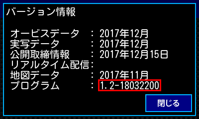 プログラムバージョンが表示され、赤枠内が「1.2-18032200」と表示されれば終了です。