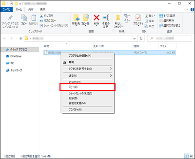 2つのファイルを選択した状態で、マウスの右ボタンをクリックし、メニューから「コピー」を選択してください。