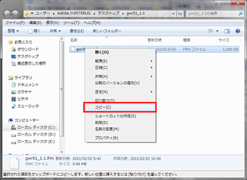 ダウンロードした圧縮されたアップデート済みのファイル群(GWR101_1.6.zip)をデスクトップに解凍してください。