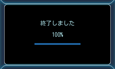 下記の画面が表示されたら、アップデートは終了です。自動的に本体が起動しますので、しばらくお待ちください。