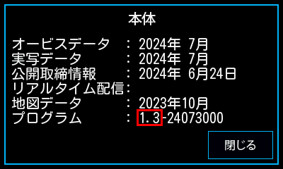 プログラムバージョンが表示され、赤枠内が「1.3」と表示されれば終了です。