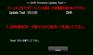 - ※DVR用microSDカードが入っていない場合、「Update」ボタンは表示されません。