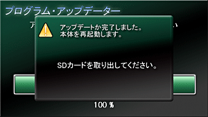 アップデートが終了すると、以下の画面が表示されます。microSDカードを本体から取り出してください。