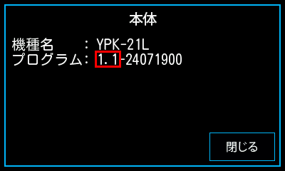 本体が起動したら以下のように操作し、プログラムバージョンを確認してください。