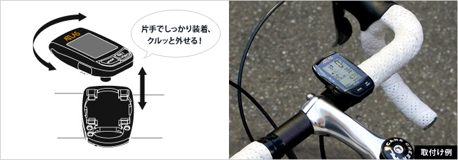 | 走行速度 | センサーによるホイールの回転数と、ホイールサイズから計算して、現在の速度を表示します。[単位:km/hとmile/hより選択] |