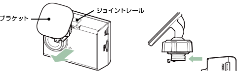 ブラケットを本体のジョイントレールに合わせ、矢印の方向にスライドさせて、本体をブラケットに装着する