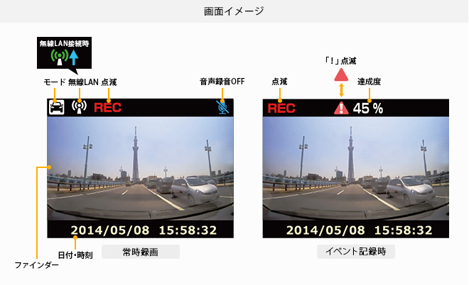 ドライブレコーダー DRY-WiFi20d スマートフォンと連動!ドライブレコーダーを操作できる!無線LAN内蔵 ドライブレコーダー