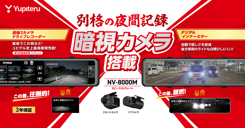 闇夜でこの明るさ。ユピテル史上最高の暗視性能。