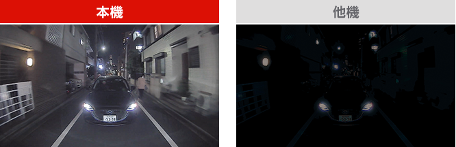 本機はリアに適した設計・センサーを採用しているので昼夜ともに鮮明記録。
