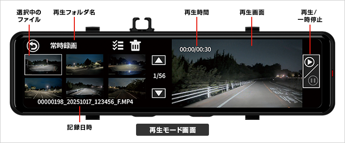 常時録画中に、記録したいタイミングでボタンを押せば、その前後の映像を専用フォルダに記録できます。