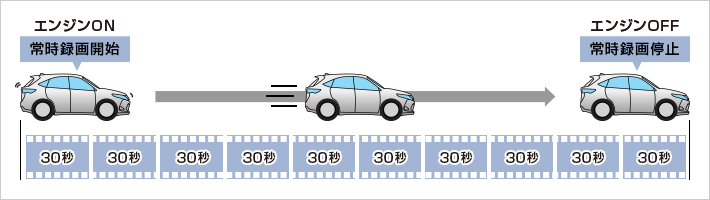 また、エンジンON(ACC ON)中にタイムラプス記録(1コマ/秒)も可能です。