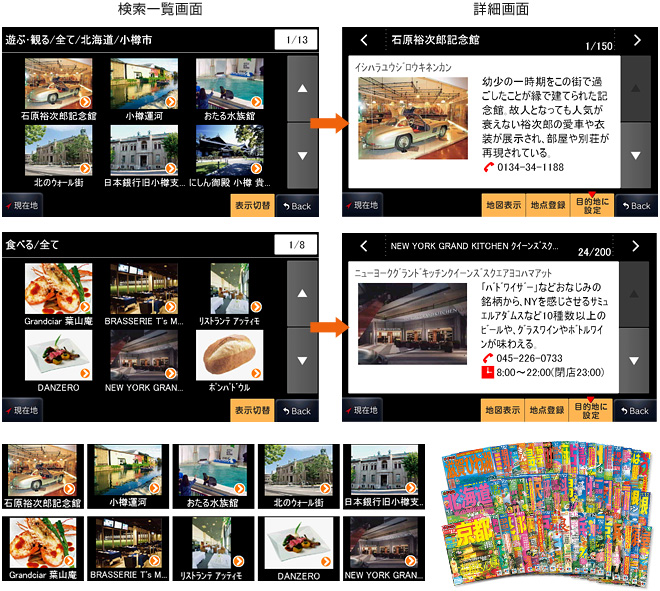 観光に便利!豊富なデータを写真で一覧表示!