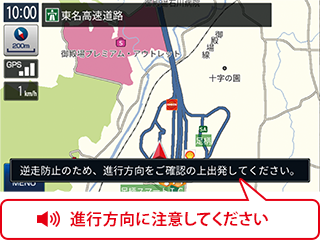 - ※都市間高速道路が対象です。全ての高速道路、状況において逆走警告の動作を保証するものではありません