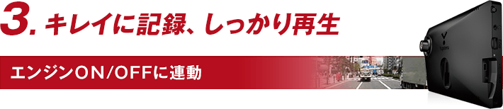エンジンON/OFFに連動して、自動で記録を開始/終了します。