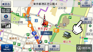 地図をスクロールして、目的地のある場所へ移動させ、地図画面にタッチして目的地に設定できます。
