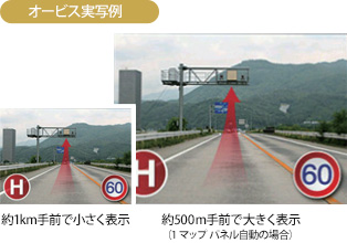 - *1 オービスは、2km(高速道のみ)/1km/500m/直前/通過をポイントごとに警報(告知)し、距離をカウントダウン表示します。