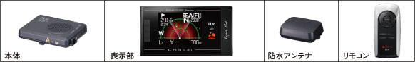 ●電源電圧:DC12V(マイナスアース車専用)●消費電流:待機時200mA以下(UHF/VHF部 OFF時)、最大480mA以下●動作温度範囲:-20℃~+85℃(GPS部:-20℃~+80℃、UHF/VHF部:-10℃~+60℃)●外形寸法:表示部77(W)×41(H)×9(D)mm(突起部除く)/本体101(W)×20(H)×82(D)mm(突起部除く)/アンテナ部61(W)×22(H)×49(D)mm、接続ケーブル3m/リモコン34(W)×70(H)×16(D)mm(電池部/突起部除く)●重量:表示部133g(接続ケーブル含む)/本体110g/アンテナ部102g(接続ケーブル含む)/リモコン19g(電池含む) 付属品:表示部用ブラケット(1)、表示部取付用両面テープ(大1、小1)、ブラケット取付ネジ(2)、リモコンホルダー(1)、リモコンホルダー用両面テープ(1)、電源スイッチ付シガープラグコード(約3m)、電源直結コード(約3m)、コードクリップセット(1)、黒色テープ(1)、取扱説明書・保証書(1)、サービスご利用ガイド(1)※本機の仕様および外観は、改良のため予告なく変更することがあります。あらかじめご了承ください。