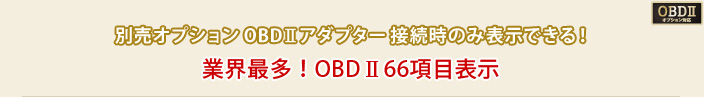 別売オプションのOBDⅡアダプターを接続すれば、Gセンサーの車速検知と比べて、より正確な速度・移動距離を検知できるようになります。本機搭載のGセンサー&ジャイロセンサー&マップマッチングと相互作用し、トンネル内などのGPS非測位置でも超高精度な警報を実現します。さらに、エンジン状態・燃費などの車両情報が表示でき愛車の状態が把握できるようになります。
