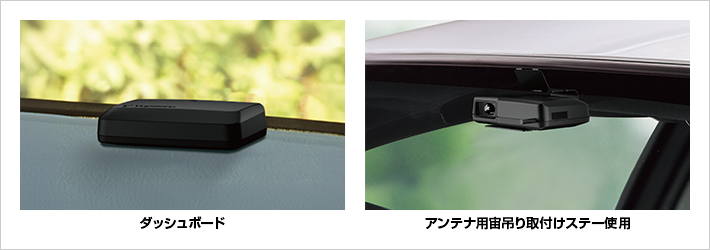 アンテナはダッシュボードの上などに設置することで、良好な受信状態を保てます。