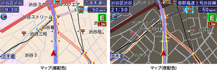 テロップ表示の他、取締路線が公開されている場合、その路線を点滅してお知らせします。[特許 第5899530号]