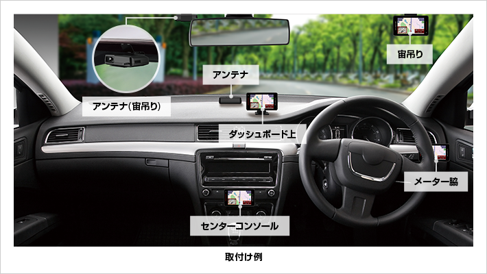 アンテナはダッシュボードの上などに設置することで、良好な受信状態を保てます。