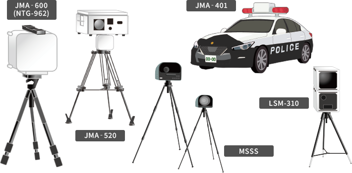 LSM/MSSSはもちろん、最新のレーダー取締機JMA-600(NTG-962)、520、401の識別と警報を実現。現在国内で稼働しているすべての移動式取締機に完全対応しています。