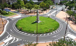 2014年から導入が増えつつある、信号機のない環状交差点「ラウンドアバウト」。進行方向にラウンドアバウトがあると、あらかじめお知らせし、注意を促します。