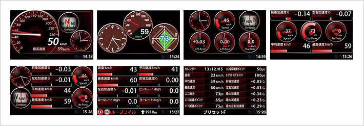 本機搭載のGセンサー&ジャイロセンサー&マップマッチングと相互作用し、トンネル内などのGPS非測位置でも超高精度な警報を実現します。さらに、エンジン状態・燃費などの車両情報が表示でき愛車の状態が把握できるようになります。