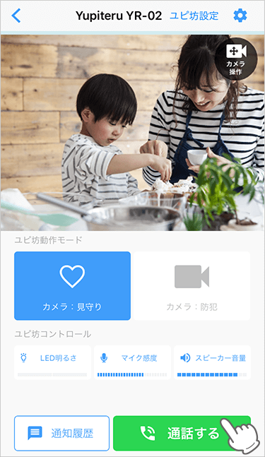 ユピ坊接続後に、ユピ坊と通話することができます。