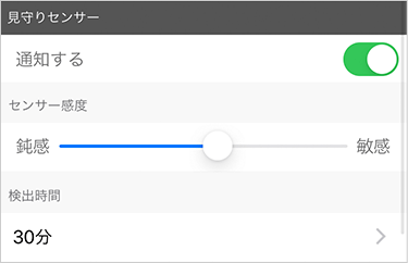 設定された時間内に人の動きを検知できない場合、ユピ坊は警告を通知します。